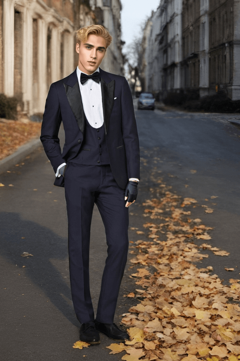 If you lean toward buying, GOOSUIT offers some stunning options that combine high quality and timeless design. One standout choice is the Navy Blue Wool Single Breasted 3-Piece Suit. Made from 100% wool, this suit is designed with padded shoulders to add structure and formality. The slim chest cut enhances your figure, while the peak lapel adds a sophisticated touch. The single-breasted design is classic and understated, ideal for both business and formal events.