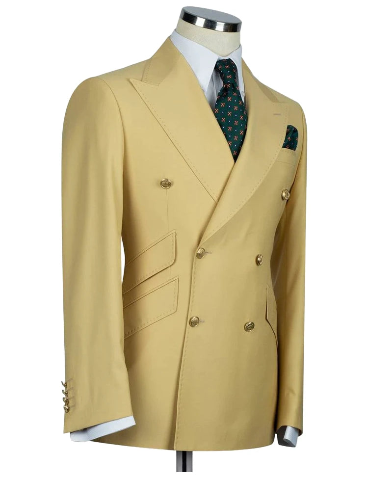 Sand Brown 2 Piece Shawl Lapel Double Breasted Suit