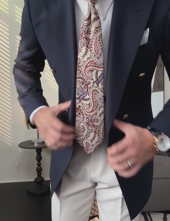 Navy Blue Slim Fit 2 Piece Double Breasted Suit