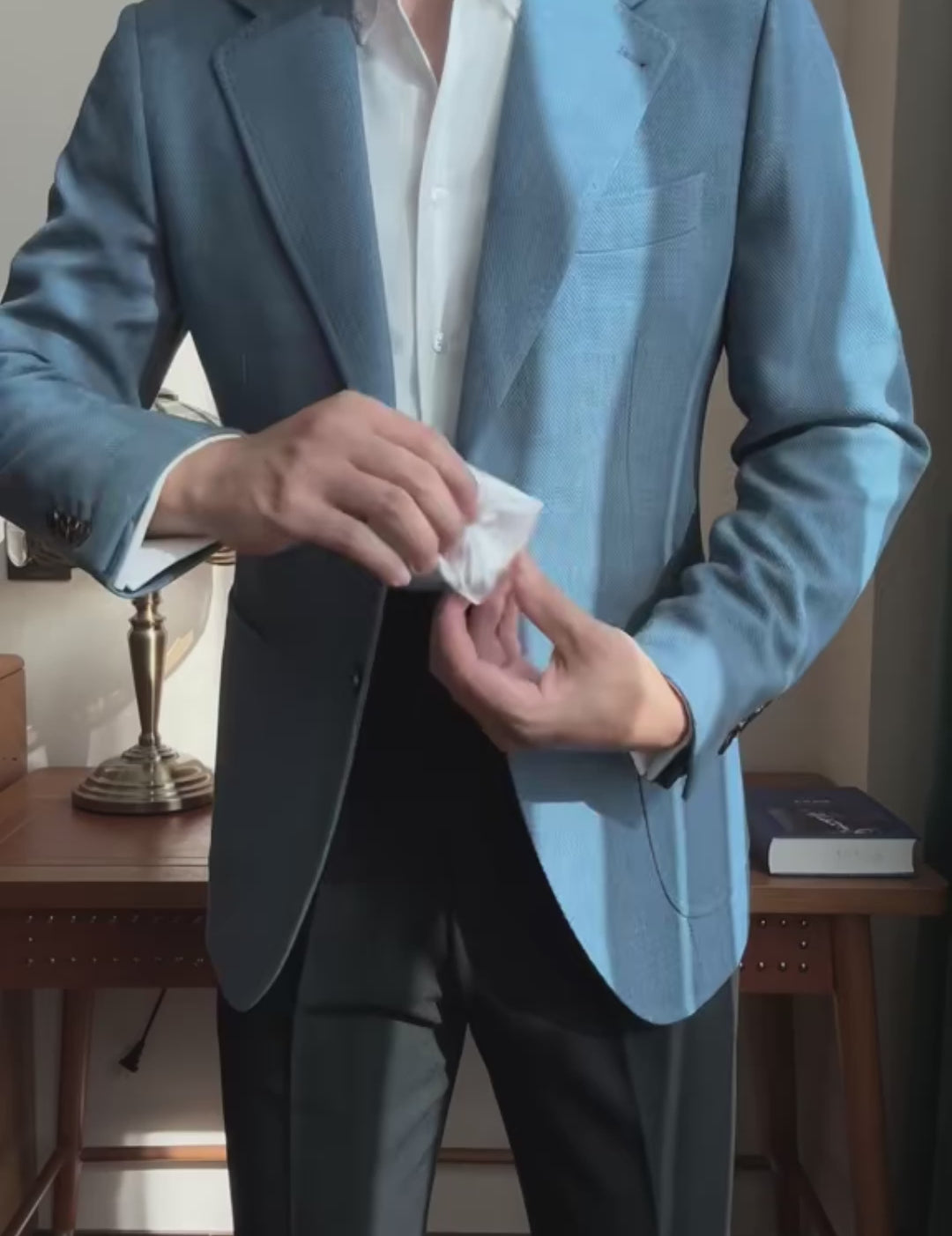 Pale Blue 2 Piece Peaked Lapel 2-Button Suit