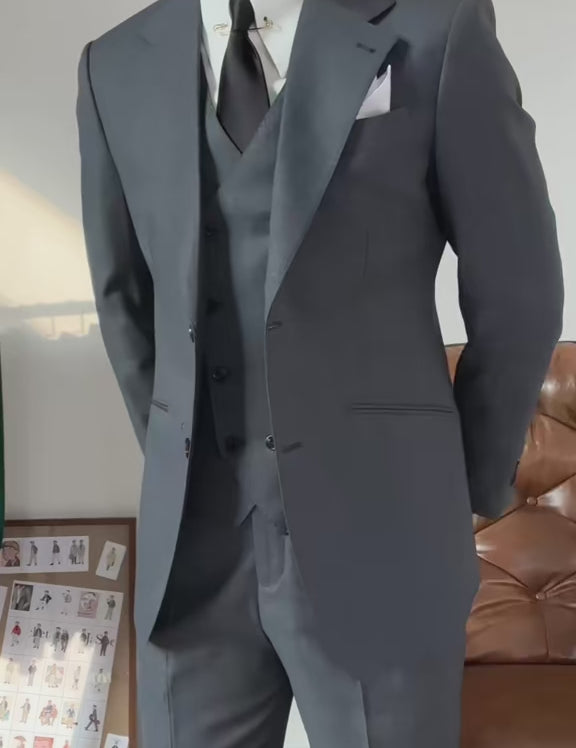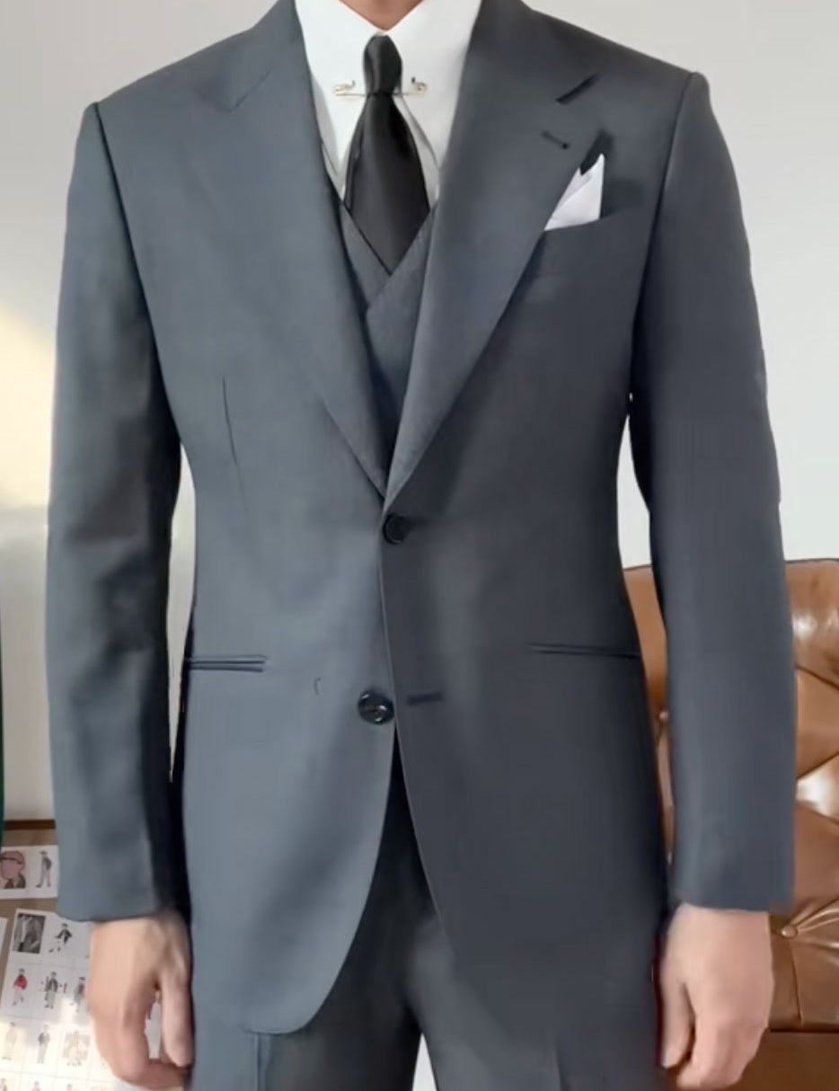 Gray 2 Piece Peaked Lapel 2-Button Suit