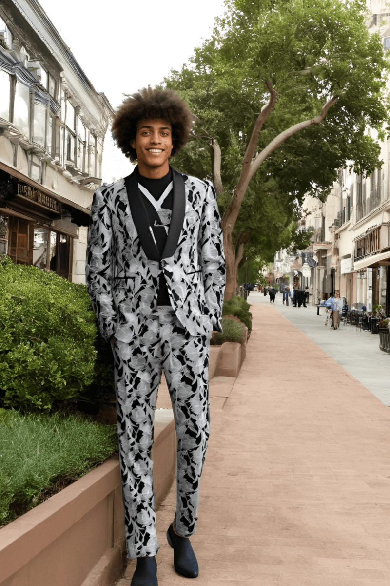 Der dreiteilige Anzug mit Blumenmuster in Schwarz und Silber von GOOSUIT ist der Inbegriff einer Kombination aus klassischer und moderner Mode. Dieses Outfit ist perfekt für formelle Anlässe wie Hochzeiten, Bankette und Feiertagsveranstaltungen und sorgt dafür, dass Sie mit Stil und Eleganz auffallen. Hier erfahren Sie, warum dieser Anzug funktioniert und wie Sie ihn mühelos stylen können.