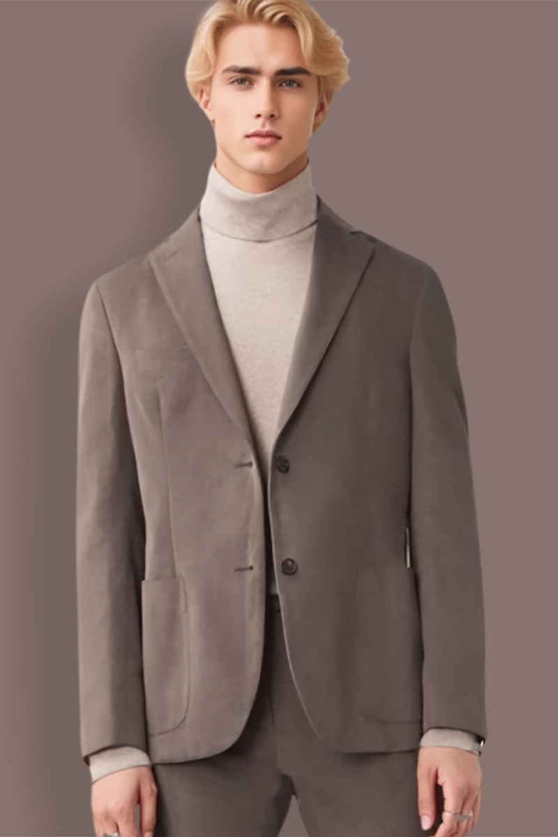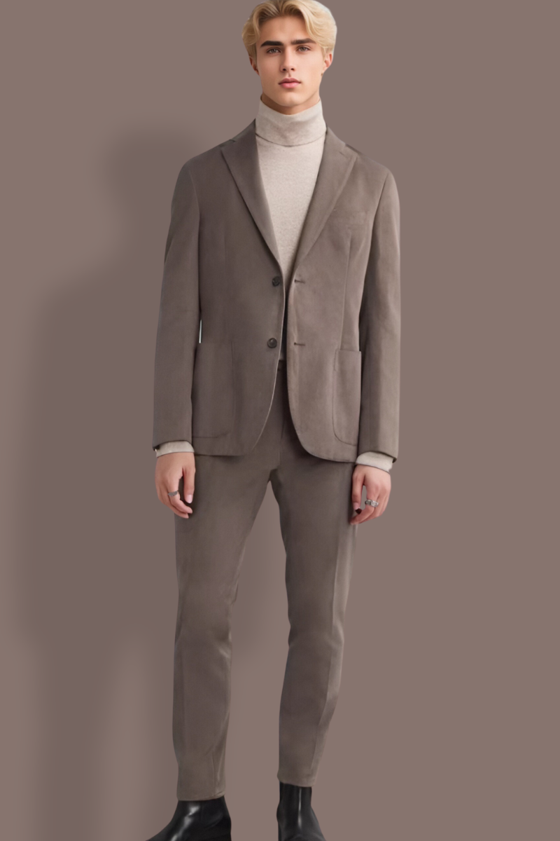 Brauner 2-teiliger Anzug mit 2 Knöpfen, reguläre Passform