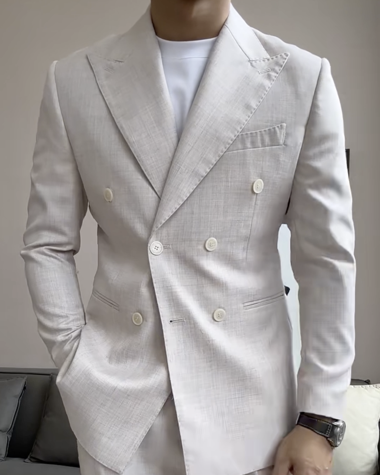 White Double-breasted 2-piece Suit