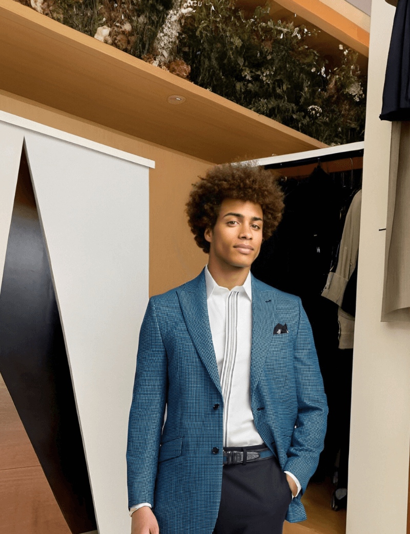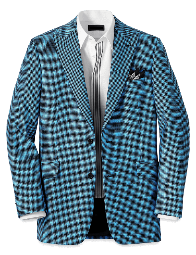 Traje de dos piezas de dos botones con raya diplomática y corte entallado en azul cielo