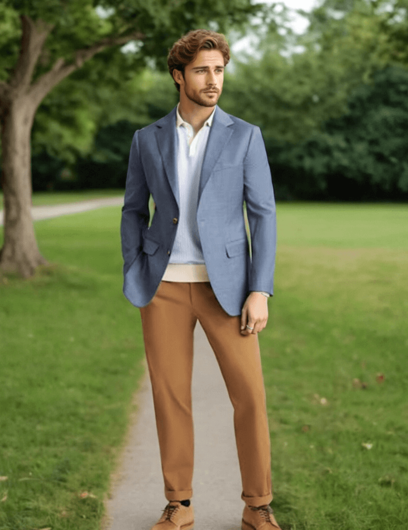 Blue Notch Lapel Single-breasted 2-piece Suit