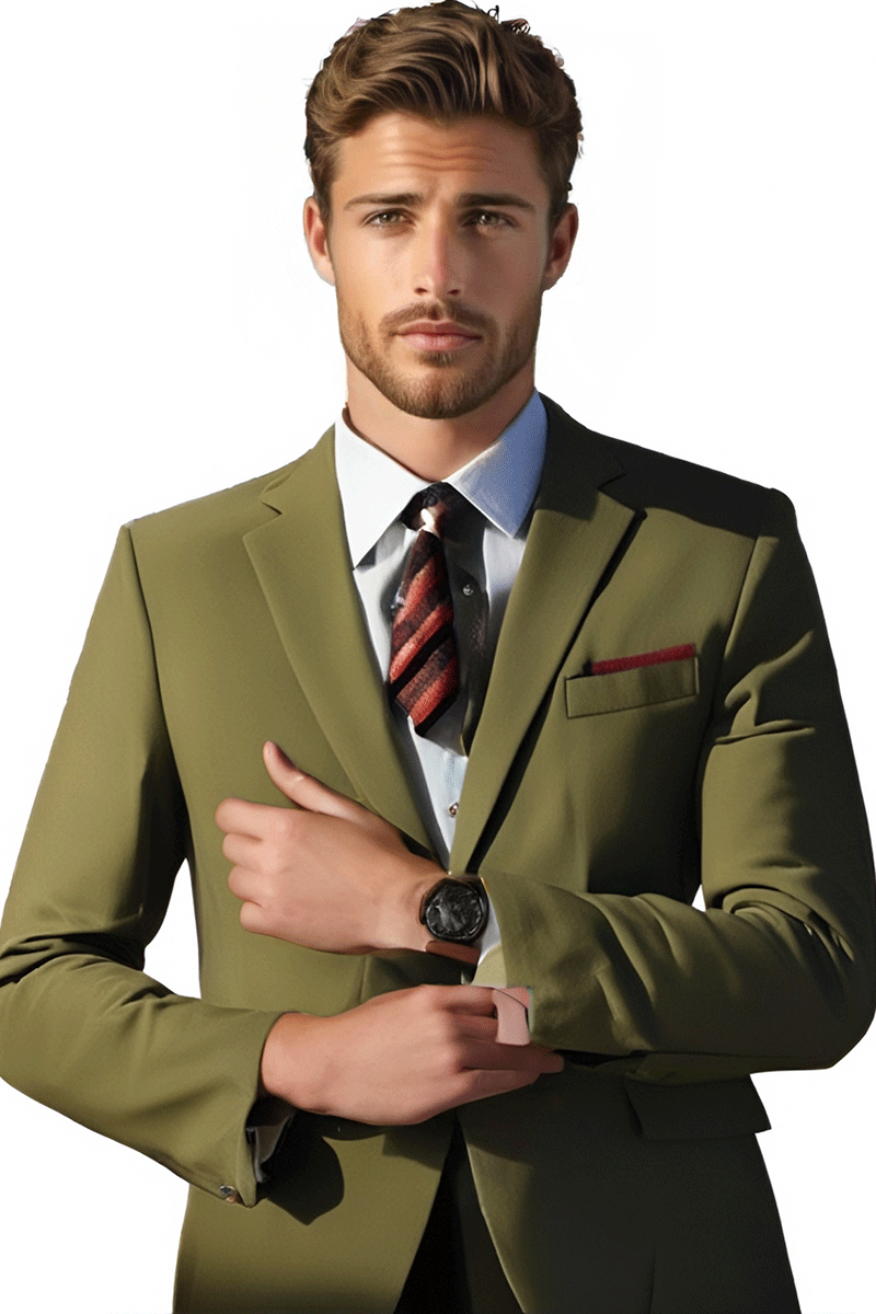 Traje de 2 botones de 3 piezas de corte entallado color verde salvia