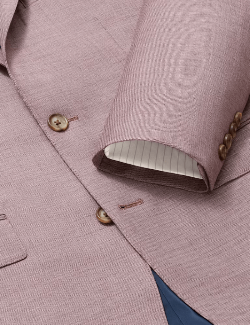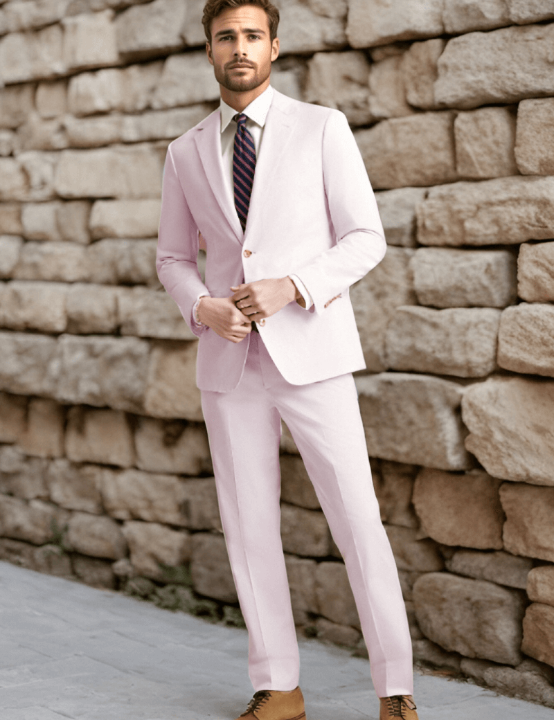 Traje italiano rosa de corte moderno con botonadura sencilla y dos botones