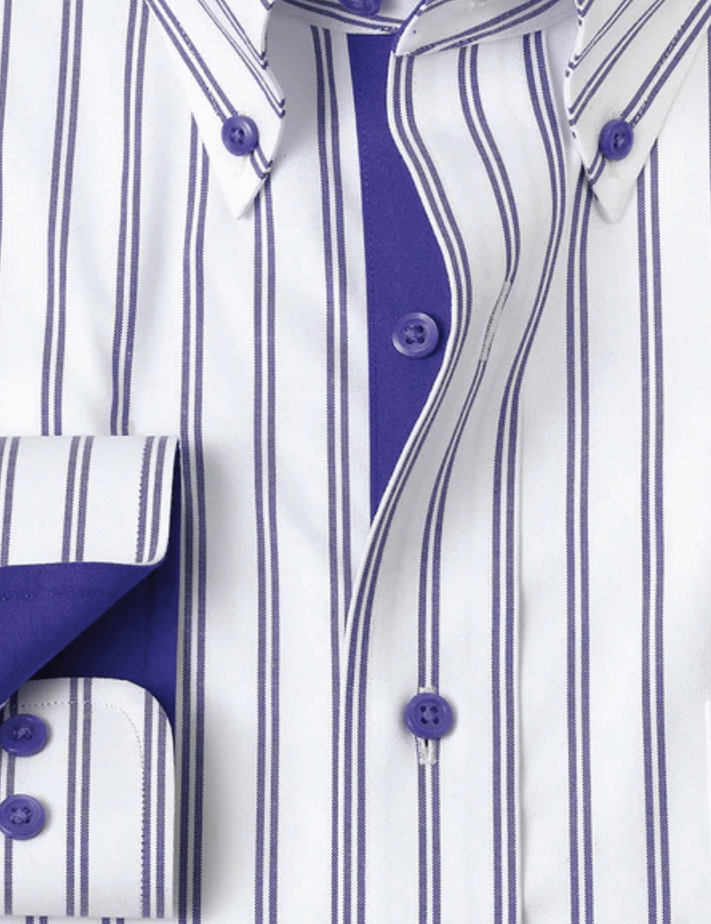 Camisa formal de rayas elásticas de color morado que no necesita planchado