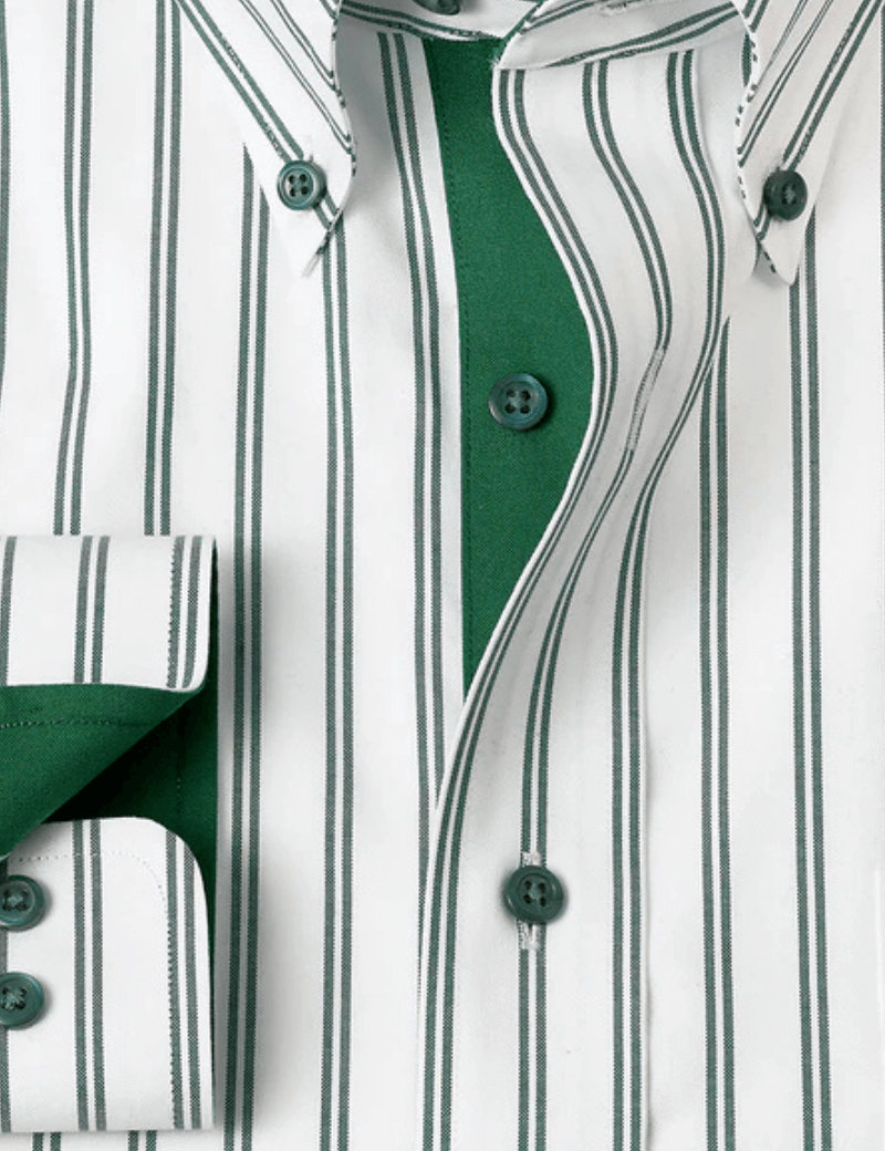 Camisa formal elástica de rayas blancas y verdes que no requiere planchado