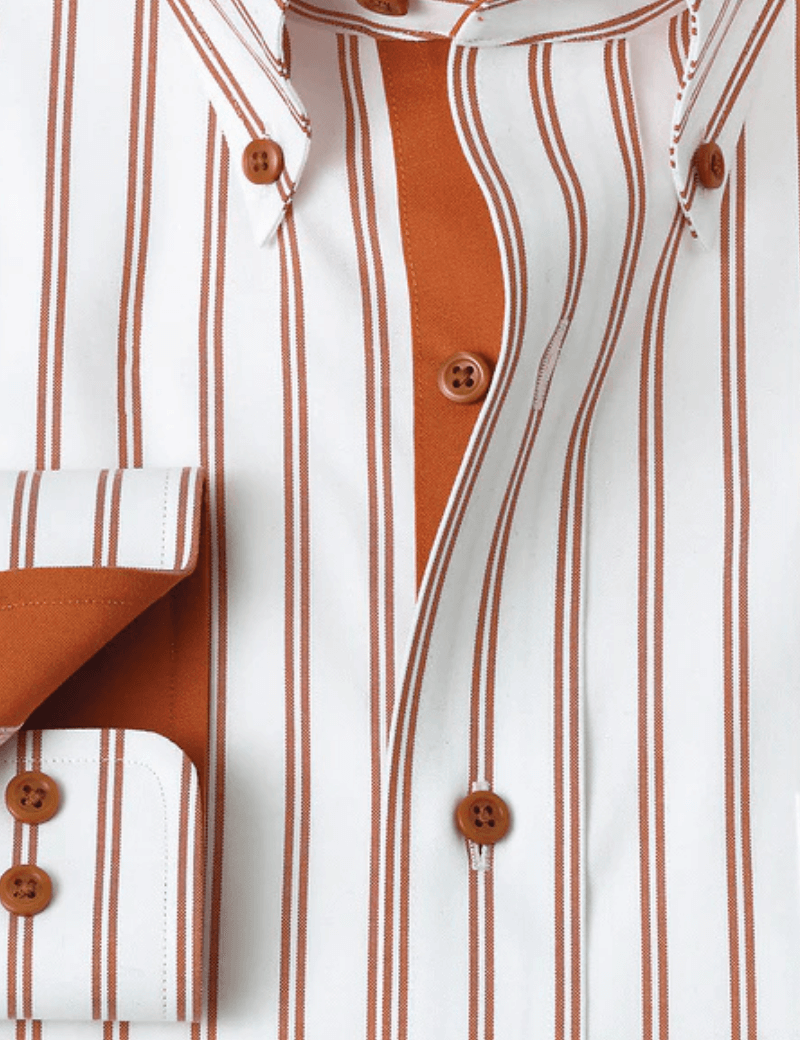 Camisa formal elástica de rayas blancas y naranjas que no requiere planchado