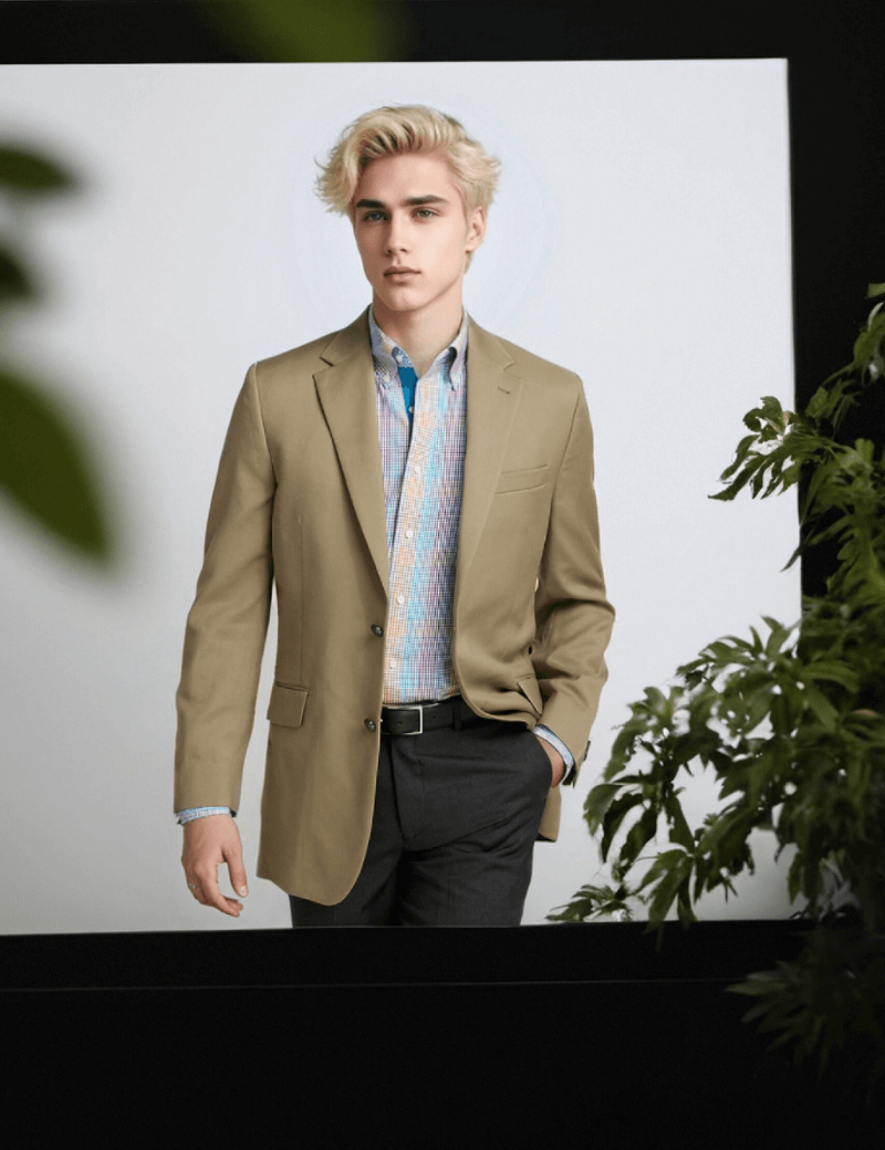 Chaqueta de corte moderno con botonadura sencilla y un botón de arcoíris