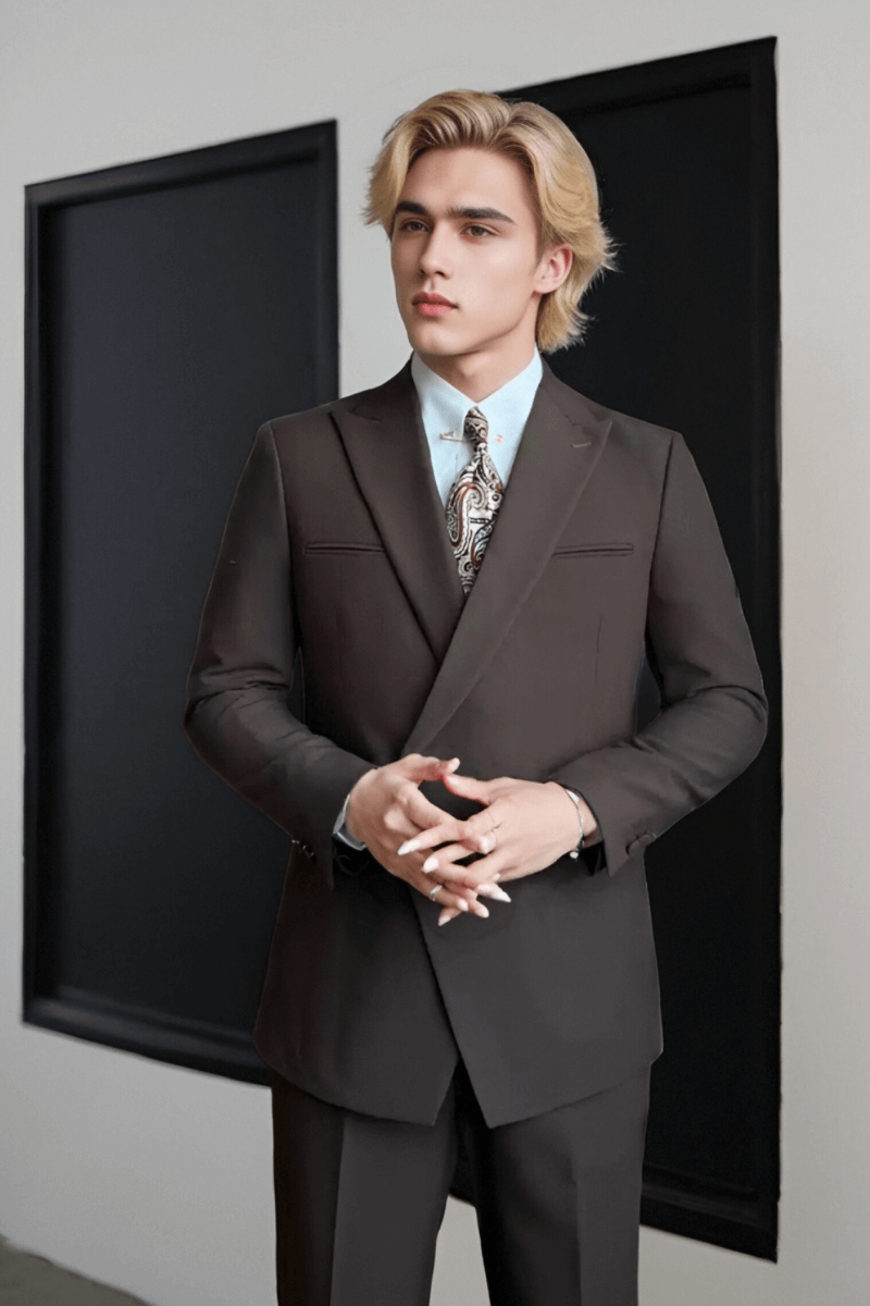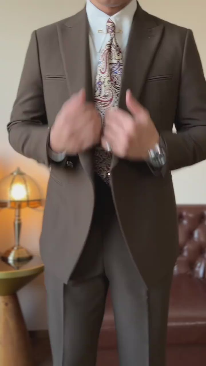 Featuring a single-breasted 1-button design, this brown slim-fit suit showcases a minimalist yet elegant style. Made from high-quality materials, it ensures comfort and durability, perfect for both business and social events. The modern cut fits the body perfectly, allowing you to express confidence and sophistication, making it an essential addition to your wardrobe.
