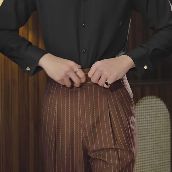 Discover the sophisticated Brown Stripe Double-Breasted 2-Piece Suit. Learn how to style this versatile power suit for a sharp, authoritative look for the office and beyond.