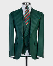Make a bold impression with this green peak lapel single-breasted 3-piece suit. Featuring a modern tailored fit, it’s perfect for weddings, proms, and stylish formal occasions.