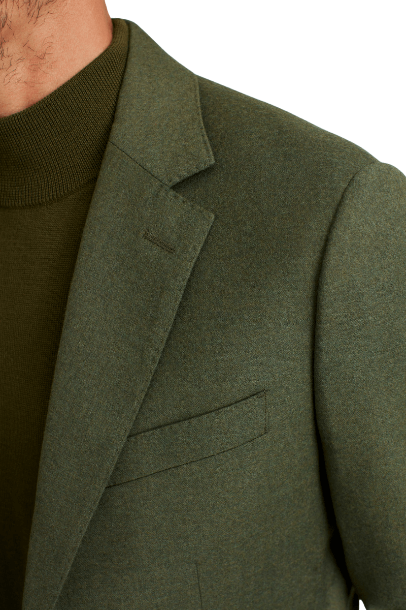 Traje de solapa con muesca de dos botones de lana elástica verde