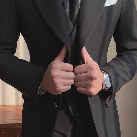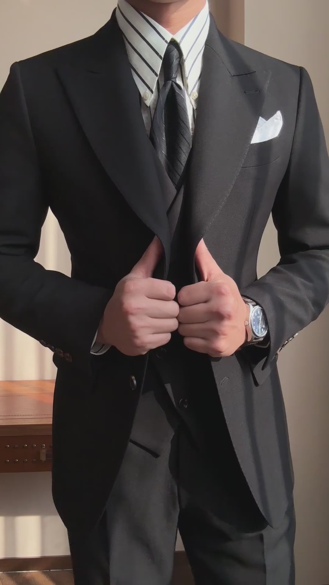 Black 3 Piece Peaked Lapel 2-Button Suit