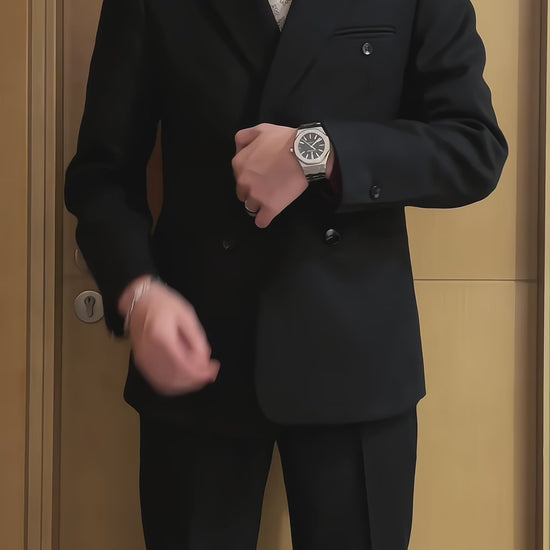 Charcoal Black 3 Piece Peaked Lapel Double Breasted Suit