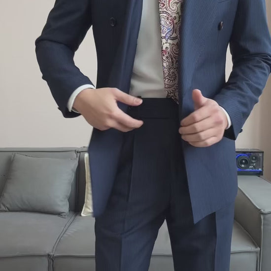 Classic navy blue striped 2-piece Shawl Lapel suit