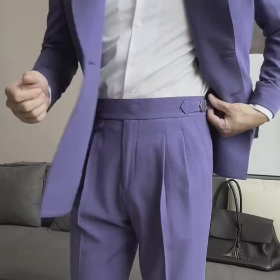 Classic Purple 2 Piece Double Breasted Peak Lapel Suit