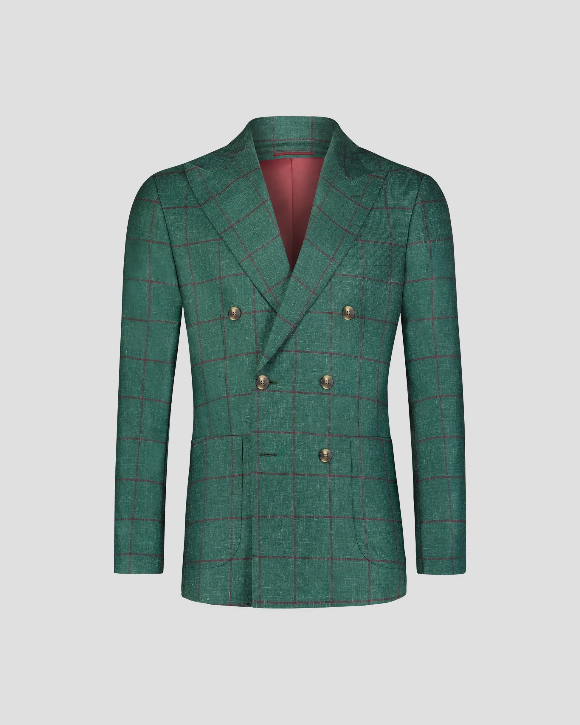 Make a statement with this green plaid peak lapel double-breasted suit. Designed with a modern tailored fit, it’s perfect for weddings, parties, and standout formal occasions.