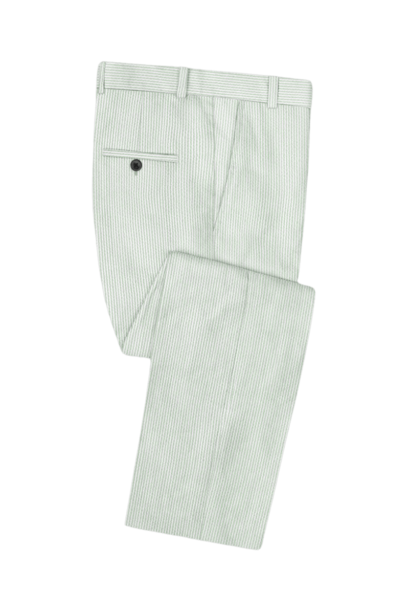 The Green Seersucker Notch Lapel Suit from GOOSUIT is crafted from selected 100% cotton for excellent breathability and comfort. The green and white striped design adds a vibrant visual appeal, enhancing your personal style. The classic notch lapel and 2-button front maintain a timeless look while adding contemporary sophistication. The single vent design offers greater mobility, ensuring you stay comfortable throughout various activities. This suit is perfect for summer business meetings and outdoor events, providing a stylish and refreshing look for any occasion.