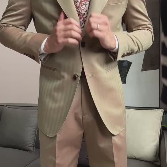 Refined and professional, this light brown stripe single-breasted 2-piece suit offers a modern tailored fit with classic pinstripe style. Perfect for business meetings, office wear, and formal occasions, it delivers confidence, comfort, and timeless sophistication for the modern gentleman.