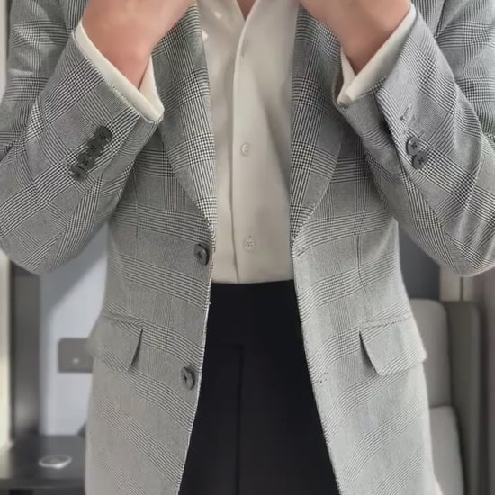 Light Gray Peaked Lapel Single Breasted Plaid Blazer Suit