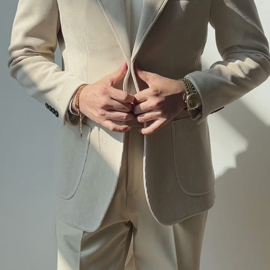 Off White Pinstripe 2 Piece Notch Lapel 2-Button Suit
