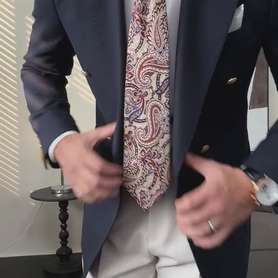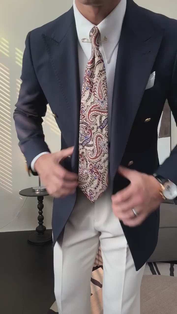 Stylish and trendy navy blue double-breasted Peak Lapel Blazer Suit